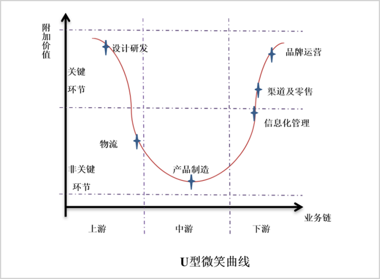在完成品牌重新定位的同时,比音勒芬也确定了专注于“设计研发与品牌运营”等附加值较高的业务链,而将处于生产、运输配送等低附加值的环节外包出去的“哑铃型”业务模型。