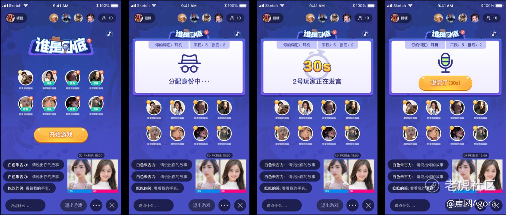 《谁是卧底》当年风靡线下的社交小游戏,需要至少2名观众加入,凑齐3人开局,相互描述己方分配到的词汇,找出不同者。