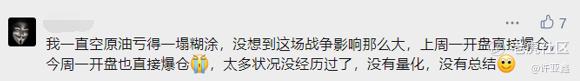 今天在看资讯的时候,看见有人留言说,“我一直空原油亏得一塌糊涂,没想到这场战争影响那么大,上周一开盘直接爆仓,今周一开盘也直接爆仓,太多状况没经历过了,没有量化,没有总结。”