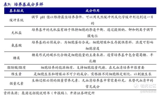 培养基开发的技术壁垒高、工艺复杂,配方一般包含 70-100 种不同化学成分(包括糖类、氨基酸、维生素、无机盐、微量元素、促进生长的因子等)。