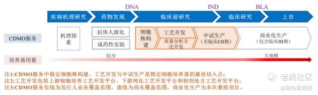 CDMO业务包括抗体工程人源化筛选、细胞株构建、工艺开发到中试生产以及临床I&II期样品生产的全流程服务,加速客户新药从基因到上市申请(DNA-to-BLA)的进程。
