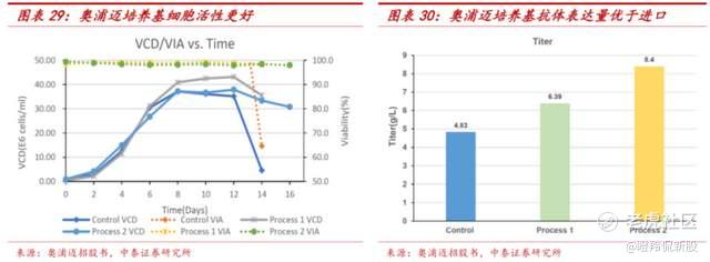 从而可以看出,奥浦迈的培养基产品、工艺优化培养基能够提升客户项目细胞培养的产量和质量,产品性能能够和对应进口品牌相媲美。
