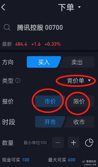 竞价限价单:竞价限价盘是有指定价格的买卖盘,竞价限价盘会根据价格及时间优先次序按最终参考平衡价格顺序对盘。在开市前时段结束后,任何未完成而输入价不偏离按盘价9倍或以上,也不低于按盘价九分之一或以下的竞价限价盘,都将自动转至持续交易时段,并且均被视为限价盘存于所输入价格的轮候队伍中。一般我用的不多,因为经常价格没弄好就成交不掉了。所以我常用下面的这个竞价市价单。