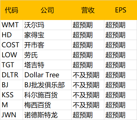 其他的综合性商场,比如$沃尔玛(WMT)$ 、$塔吉特(TGT)$ 等,业绩相对稳定。