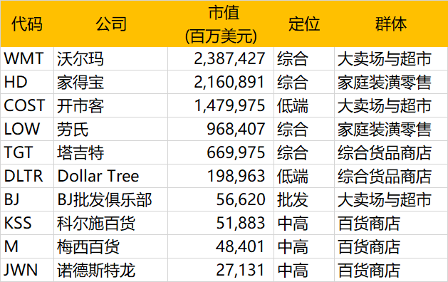 $(WMT)$ $(HD)$ $(COST)$ $(LOW)$ $(TGT)$ $(DLTR)$ $(BJ)$ $(KSS)$ $(M)$ $(JWN)$