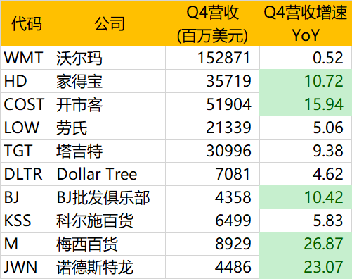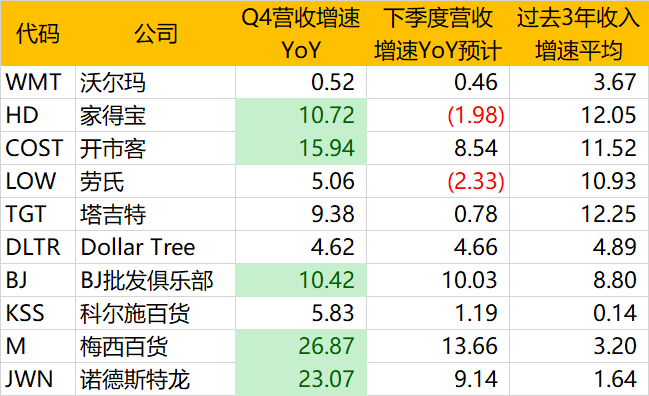 显然,梅西百货、诺德斯特龙、科尔施百货、开市客的增速要高于过去3年的平均;家得宝要好于劳式。