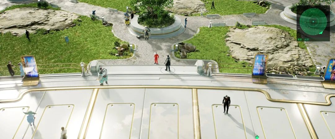 而到了中层世界,游戏中的世界开始变得绚丽,霓虹灯、全息影像灯诸多赛博朋克标志性的元素逐渐出现,来自不同星球的居民、街道上热闹的景象构建出了一幅繁荣之景。