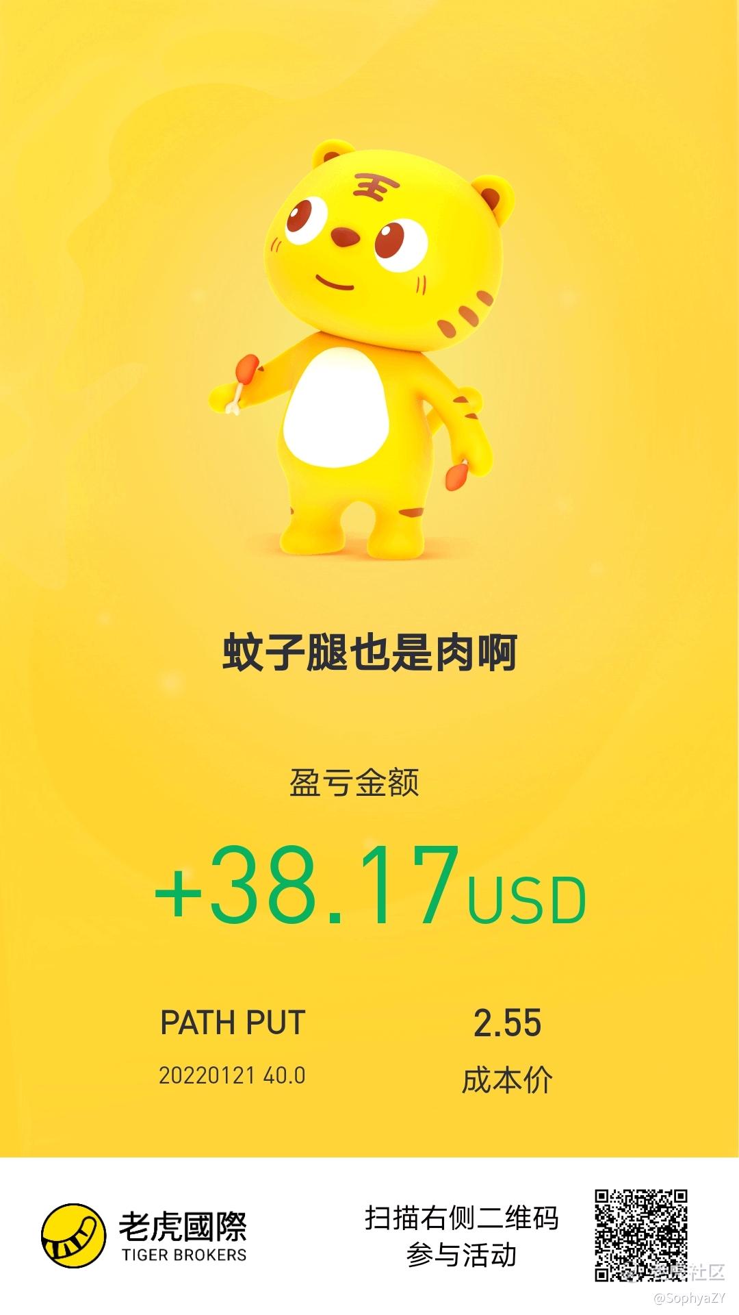 本想通过sell put 买成长股PATH,但行权价40美元定得太高了,一跌破,我马上平掉了做空的看跌期权,还赚了点零花钱。等跌到底了再买更好。