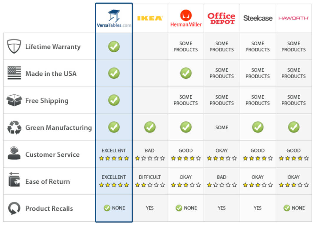 特征差距分析可以用来快速比较许多竞争对手。在一个轴上映射你的关键竞争对手,然后在另一个轴上映射产品最关键的方面;它将为竞争格局创建一个很好的视觉表示。