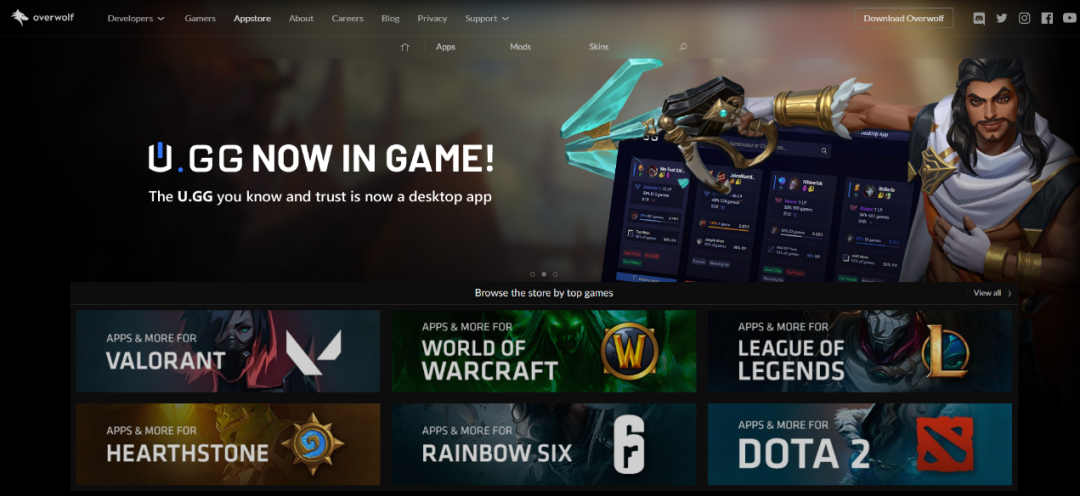 而Overwolf平台则选择拓宽游戏UGC创作者的边界,不仅协助创作者制作游戏MOD,也包括为游戏制作各种插件和应用,为创作者提供开发工具和商业化支持,对于玩家而言,则相当于一个聚合的工具型平台。