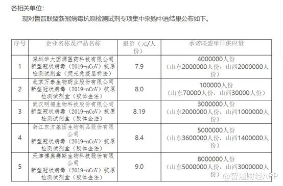 除此之外,国内的抗原检测试剂企业也没有摆脱集采的命运,多省发布新冠抗原检测试剂集采方案。广东省、河南省直接公告集采中选企业为万孚生物,中选价格调整为9.8元/人份。智通财经APP通过了解获悉,在去年的5月21日,广东省发布新冠病毒检测试剂联盟地区集采带量采购中选信息,万孚生物新冠抗原检测试剂盒中标,中标价格为16.8元/人份。对比之下,万孚生物此次的中选价格较前次下降了7元/人份,降幅达41.67%。山东省和山西联盟集采价格进一步降低,最低降至7.9元/人份。