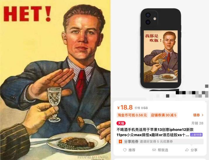△反酗酒运动中的经典宣传海报,现在印在了手机壳上,成了酒蒙子青年们的最爱