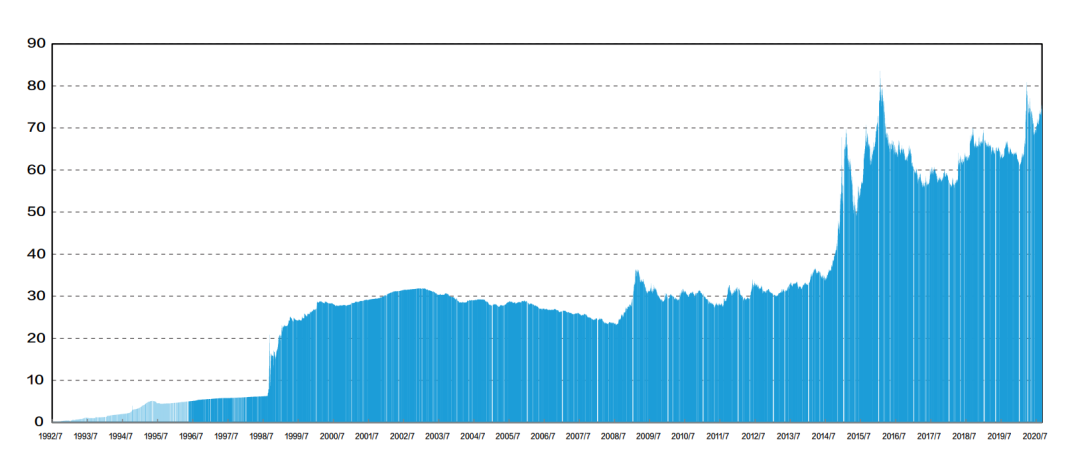 这还没完,1998年亚洲金融风暴,直接给汇率摁了超级加倍,千禧年的汇率更是达到了28.1287。