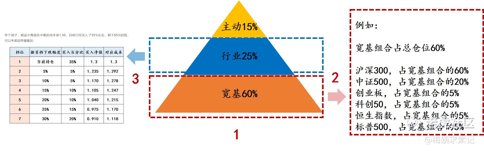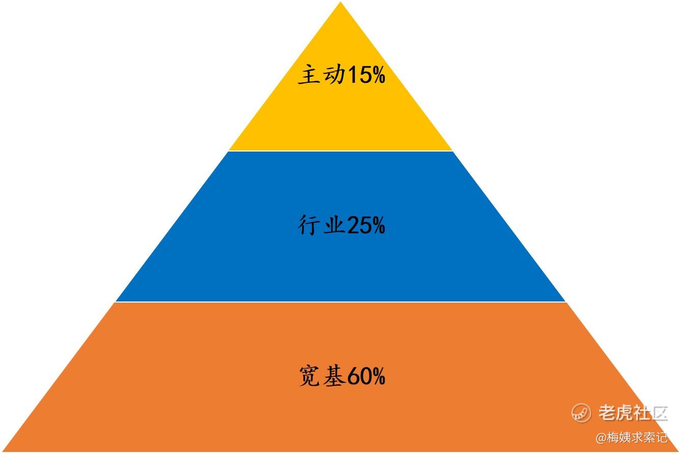 比如宽基:(行业+主动)=60%:40%,就会形成类似这样的投资金字塔: