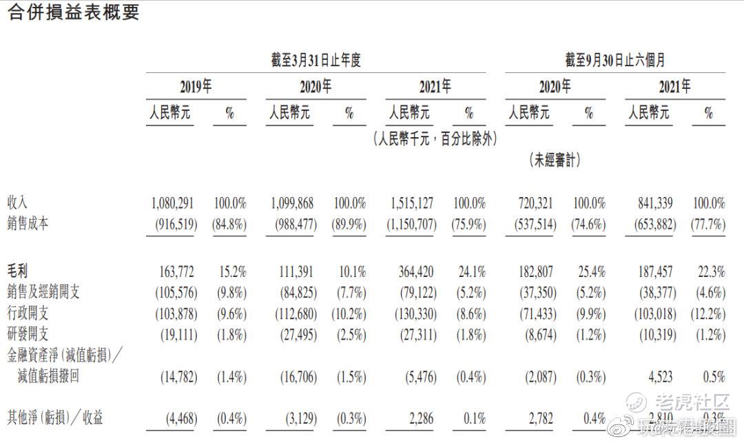 于往绩记录期间公司收入录得持续增长。2018年至2020年,公司分别实现收入人民币10.8亿元、11亿元及15.15亿元,复合年增长率为18.4%;同期毛利率为15.2%、10.1%和24.1%。截至2021年9月30日止6个月,收入为约8.41亿元,同比增长16.8%,毛利率达22.3%。