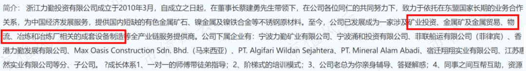 力勤投资是一个涉及矿业投资、金属矿及金属贸易、物流、冶炼等的全产业链集团,旗下包括宁波力勤、宁波力石贸易有限公司等等。