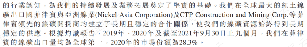 2020年,力勤在菲律宾出口市场的份额为28.3%,假设菲律宾的镍贸易量大部分为出口,则力勤负责的部分达到1041万吨。