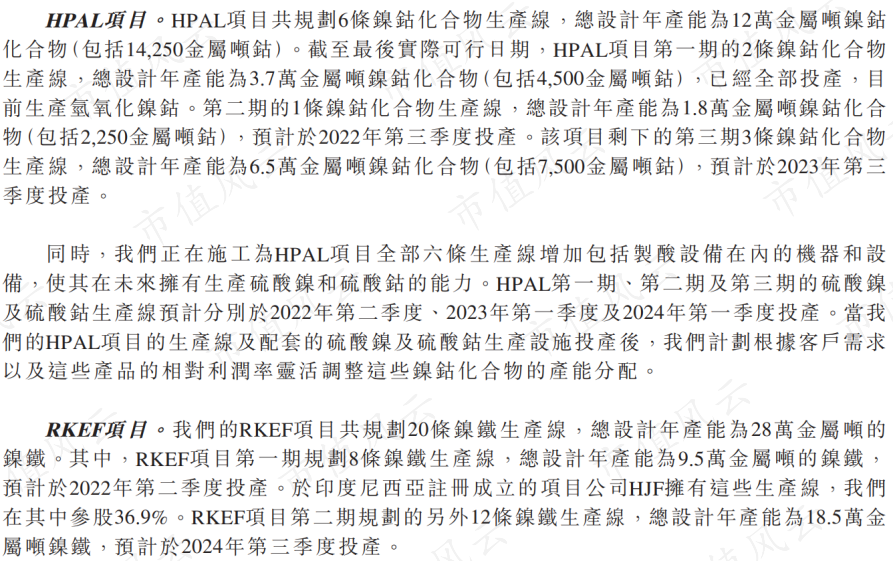镍钴化合物的生产从去年6月开始,由公司位于印尼的子公司HPL进行,负责HPAL项目一期和二期的运营,HPAL指的是一种冶炼工艺。