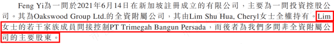 Feng Yi也是力勤在印尼的商业合作伙伴。公开资料显示,Feng Yi大股东Lim Shu Hua, Cheryl的家族(以下称印尼家族)控制着印尼的布米达马农业,后者是一家新加坡上市公司,2020年营收高达40亿人民币。