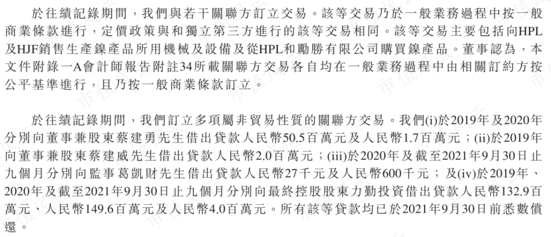 宁波力勤曾向董事长蔡建勇、董事蔡建威(蔡建勇的胞弟)、监事葛凯财以及力勤投资借出贷款。截至2020年底,向力勤投资的借款达到1.5亿元,占到公司应收关联方款项的73%。当然这些借款后来都还清了,因此去年三季度末为0。