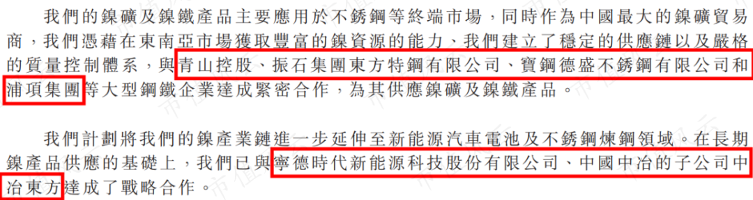 在需求端,公司新能源电池的客户有格林美、宁德时代(300750.SZ)、中冶东方,不锈钢的客户有青山控股、振石集团东方特钢、宝钢德盛不锈钢、浦项集团(PKX.N)。青山控股正是开头吃瓜传言的主角。