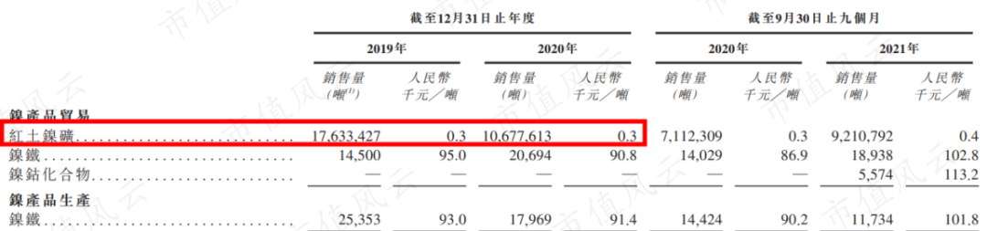 这一数字占到公司2020年红土镍矿总销量的97.5%。