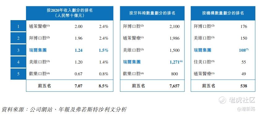 瑞尔集团是于1999年成立的中国中高端民营口腔医疗服务提供商。在过往十年当中,已服务患者约740万人次,成为中国领先的口腔医疗服务集团,业务遍及全国,同时运营瑞尔齿科(高端)和瑞泰口腔(中端)两个品牌。提供各类专业及个性化口腔医疗服务,包括普通牙科(洗牙,补牙),正畸科(矫正),种植科(种牙)。于2019、2020及2021年度以及截至2021年9月30日止六个月,忠诚客户复诊率(即首次就诊起计六个月后再次到诊所或医院就诊的患者的百分比,不包括同一诊疗的后续问诊)分别为42.1%、 41.4%、 45.8%及47.6%。截至2021年9月30日在中国以瑞泰口腔品牌经营7家医院,及经营104家诊所(包括瑞尔齿科品牌51家及瑞泰口腔品牌53家),共有882名牙医。