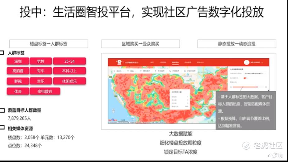 “社区”这一最广泛覆盖人群的场景,广告到达率高,客户触达频次也高。而社区内居民又是相对稳定的,这也意味着可以相对有效地总结出社区内人群的共性特征。