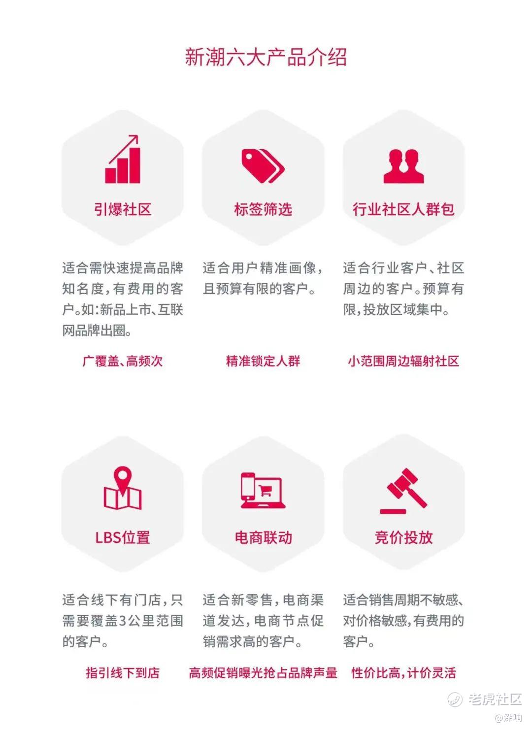 同时,为了满足预算不同、营销目标不同的广告主,新潮传媒也有六大产品。
