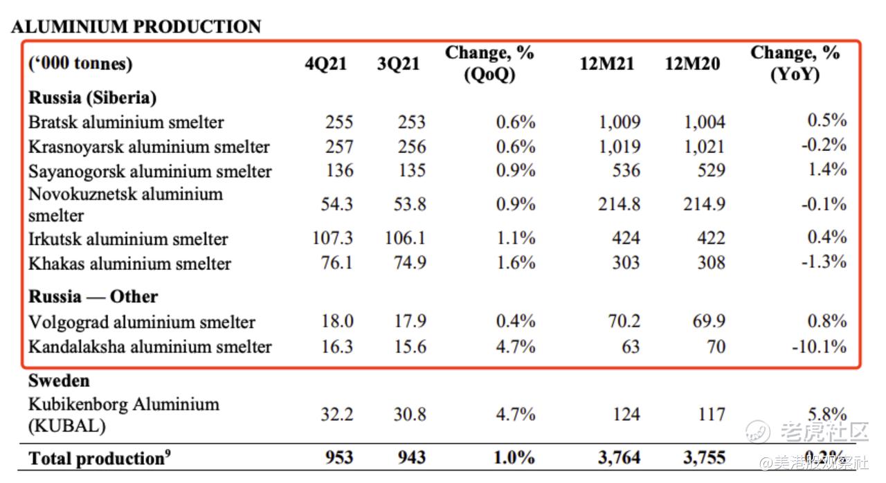来源:俄铝2021年四季报
