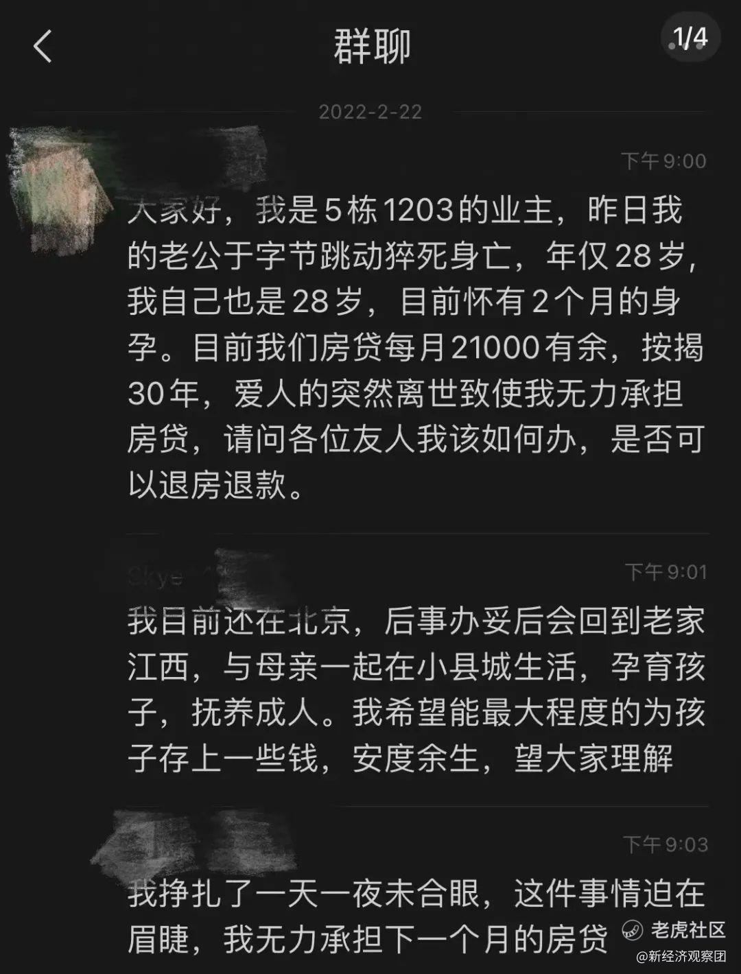 根据吴某妻子在社交平台的发声,其丈夫生前在健身房感到不适,与工作人员报告后,后者并未第一时间处理,而是让他自己找医生。最后在字节跳动大厦里拖了一小时才给妻子打电话。妻子认为,丈夫心梗猝死,是字节跳动耽误了最佳抢救时间。妻子本人刚怀孕两个月,没有工作和收入,还有每月21000元的房贷要还,哭诉无力承担下个月的房贷。