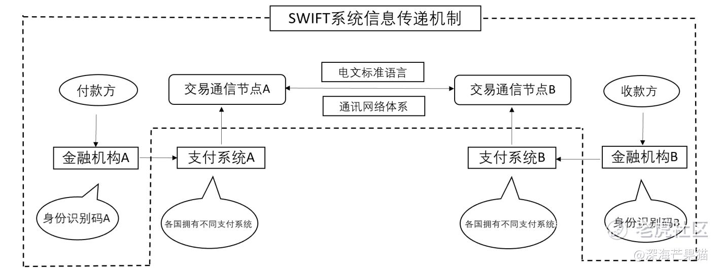 这里需要注意的是,坊间很多文章都将SWIFT系统弄混淆成SWIFT结算系统。实际上它仅仅只是国际收付清算体系的信息通道,简单点说就是一个国际收付清算体系。