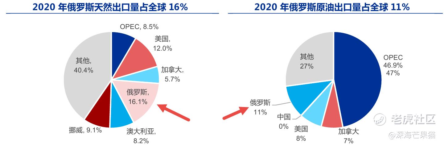 然而不可忽视的是俄罗斯是全球产油大国。据统计2020年俄罗斯天然气出口量占全球16%,原油出口量占全球11%。