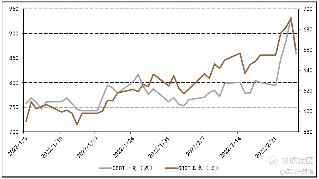 当然俄罗斯也是重要的农产品出口国,主要是小麦、玉米等粗粮。欧美将俄罗斯踢出SWIFT系统无疑会造成这些农作物的价格上涨。