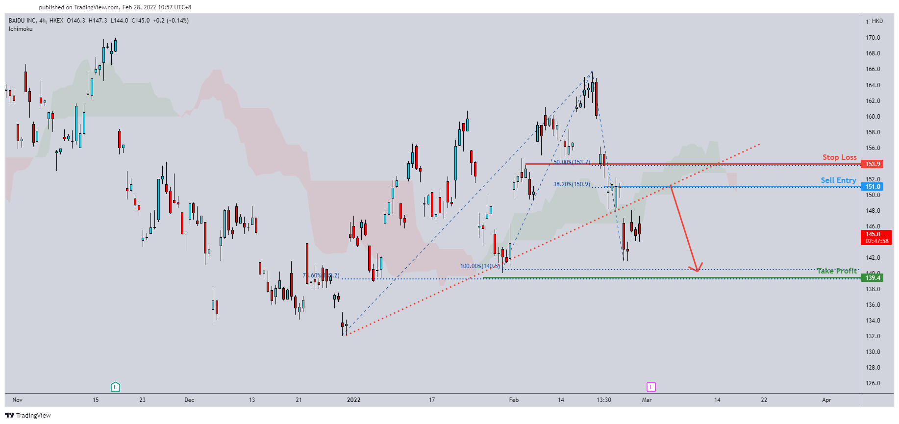 I'm seeing prices abiding to me descending trendline and going on a strong bearish momentum. Looking to get in at the sell entry @ 22.05 in line with 100% Fibonacci extension and also horizontal overlap. Probably going to short to 18.35 in line with 127.2% Fibonacci expansion and 127.2% Fibonacci extension have my stop loss at 24.9 in line with 23.6% Fibonacci retracement and also is somewhere closer to the 100% Fibonacci extension level.