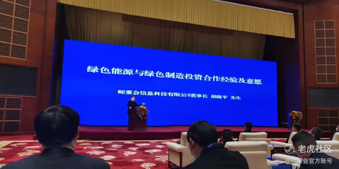 活动中,胡海平董事长做了“绿色能源与绿色制造投资合作经验及意愿”专题汇报,并结合智联网平台师董会“平台+实业”助力中小企业发展,以及晖阳新能源投资发展新能源锂电池材料项目等内容发表了看法。