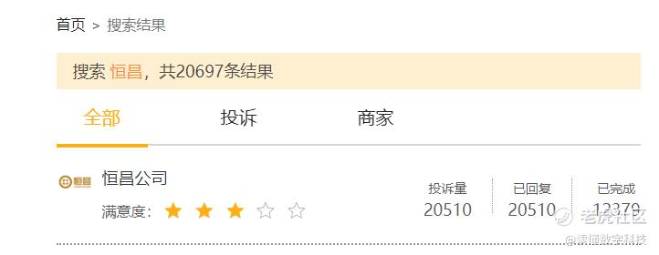 当前, 黑猫投诉上恒昌的投诉累计已超2万条,其中已完成状态仅12000余条,完成率约为60%。