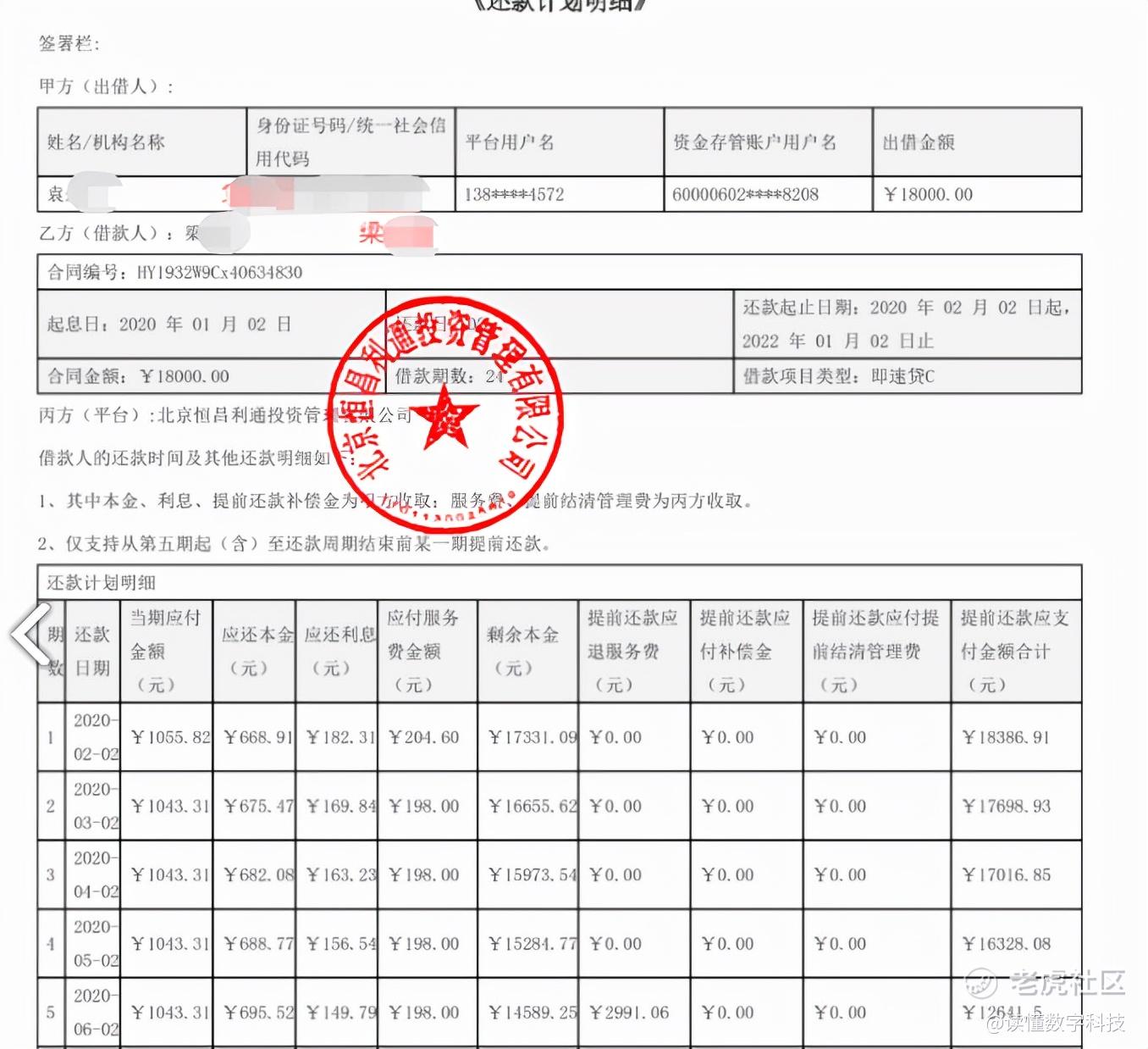 从梁某提供的《还款计划明细》截图可以看出,除合同金额与提现金额存在3000多元的差异外,各期还款金额完全吻合,亦即:恒易贷是用14643元的借款本金,赚着18000元的息费,梁某两年下来要还过万元的息费。
