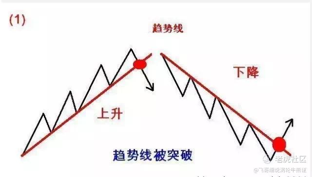 上升趋势当中,价格跌破了上升趋势线;下降趋势当中,价格反弹突破了下降压力线,这都是趋势发生转变的基础。