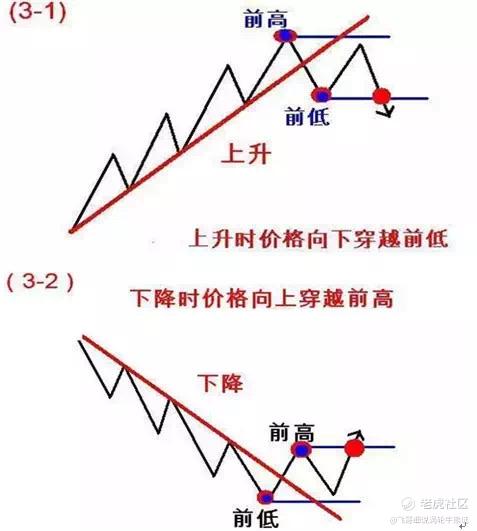1、在上升趋势中,如果价格已经穿越先前的高价而未能持续挺升,稍后又跌破先前的高点,则趋势很可能会发生反转;
