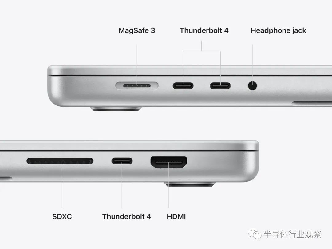 苹果现在决定增加更多的端口,如Mag Safe 、 Thunderbolt 4 、 HDMI 2.0、 SD 卡 UHS 2 插槽和高阻抗耳机插孔。而 M1 MacBook Air 只有 2 个 Thunderbolt , 3 个接口和一个标准耳机接口。