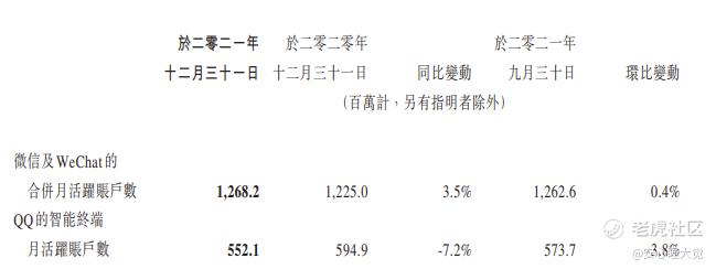 微信活跃用户量12.68亿,继续保持增长。同比增长3.5%,环比持平基本。
