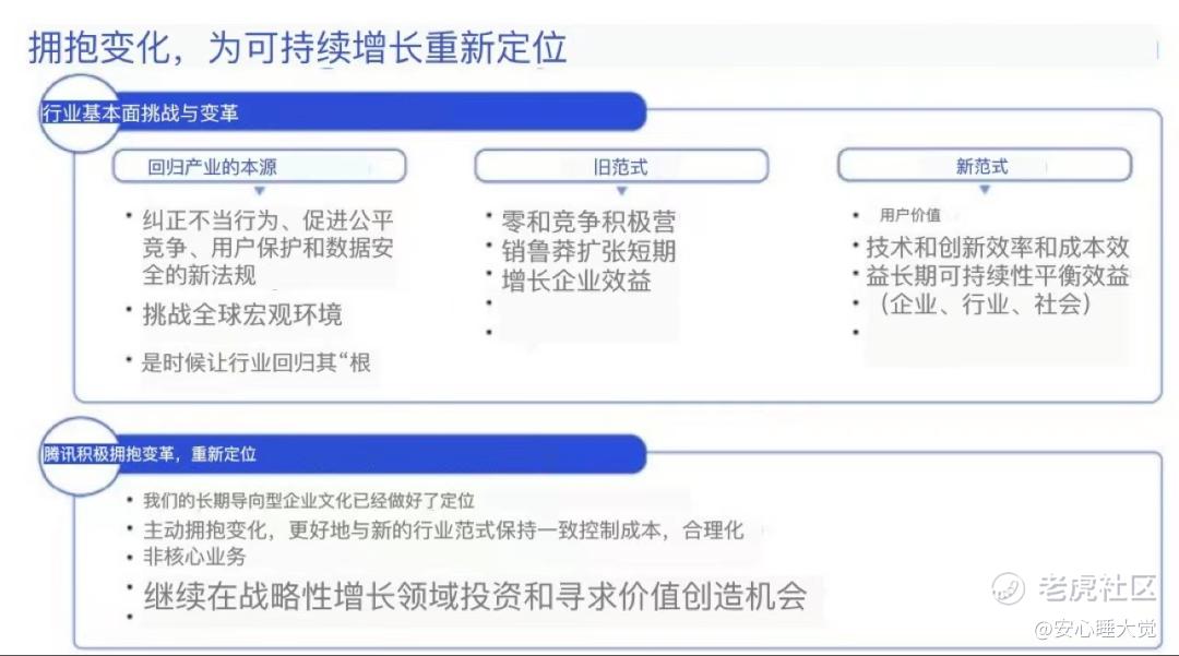 腾讯将积极拥抱变革,做技术创新,做有益于企业、行业、社会的努力。颇有互联网作为公共设施的决心。