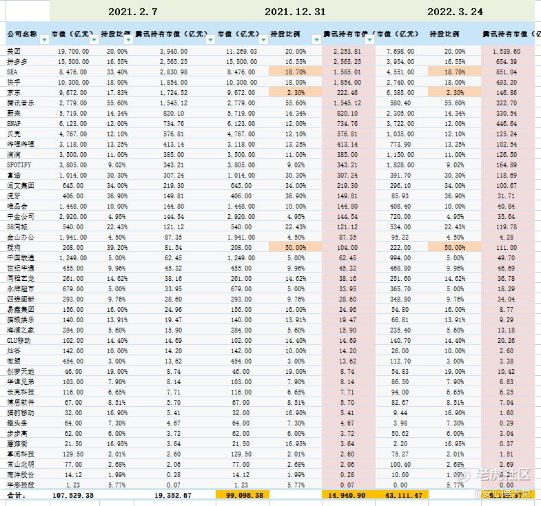 以上表格为粗略估计,主要可能有两点误差:1投资比例有变化,2投资公司有新增市值较大的没有统计在内。后续我再复核下吧,毕竟时间有点久了。