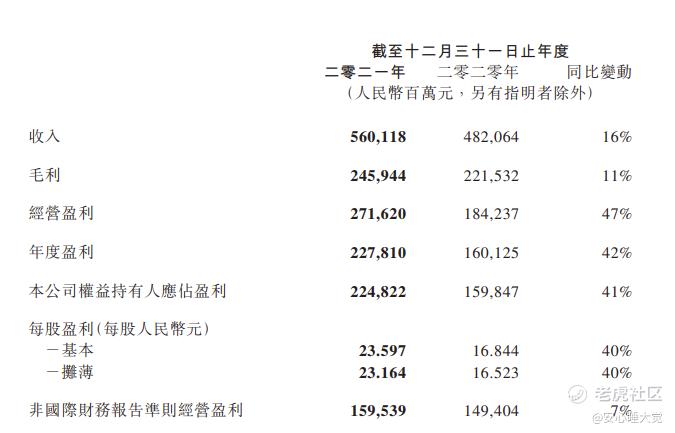 腾讯2021年营收达到了5601亿元,同比增长16%。非国际会计准则净利润1595.39亿,同比增长7%。