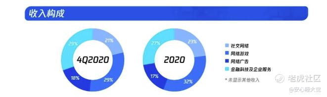 2020年收入结构中游戏业务是第一大业务占比32%,此时金融科技与企业服务占比27%。