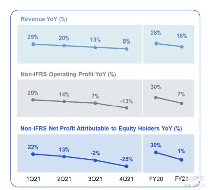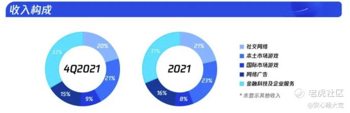 2021年收入结构发生了很大的变化,第一大业务变成了金融科技与企业服务(很多地方简称FBS)占比31%,而2021年第四季度更是达到了33%。