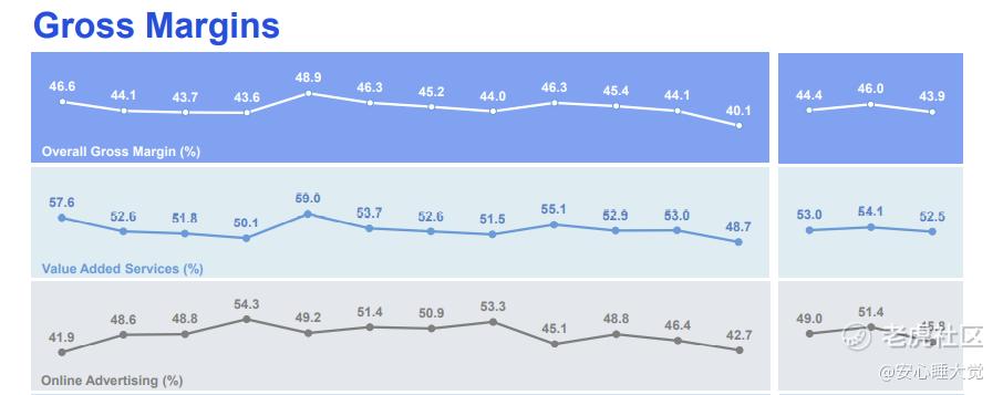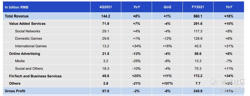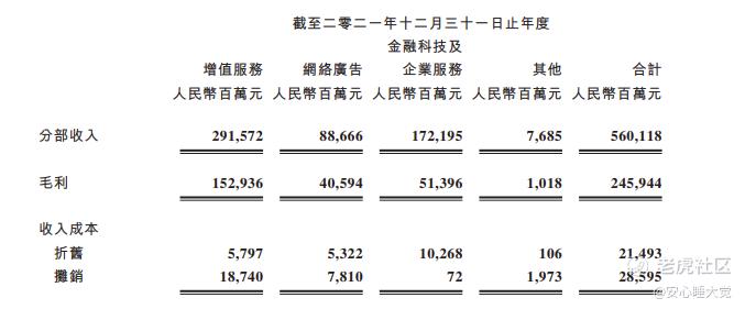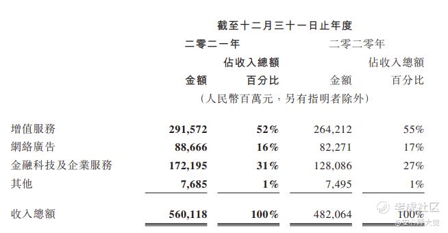根据财报来看,整体收入提升主要由于金融科技与企业服务增长(同比增长34%),同时增值服务与广告收入增速不足。