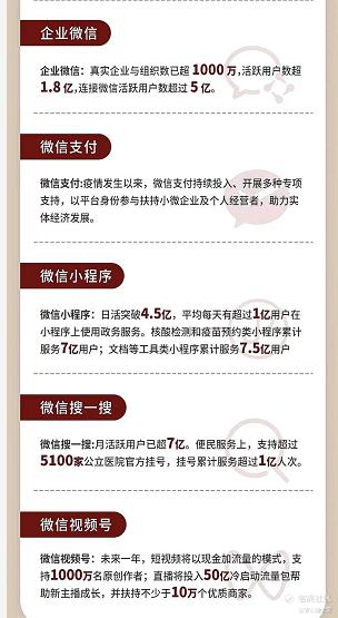 用腾讯自己的披露,就是如上图内容,在企业微信、微信支付、小程序、搜一搜和视频号都有着不小的进步。