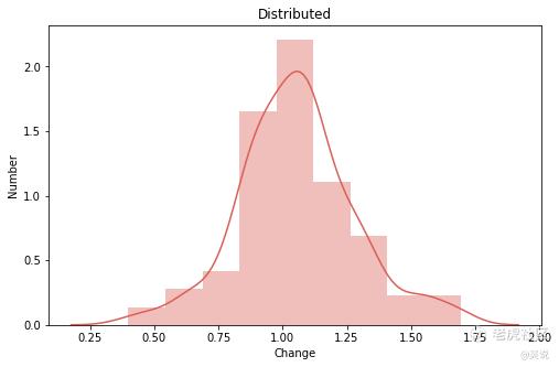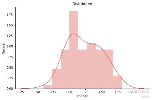 可以明显地发现,BTC 涨幅分布较为均匀,中位数为 0.992(下降 0.2%) ,平均数为 1.006(上涨 0.6%),没有明显右偏分布。